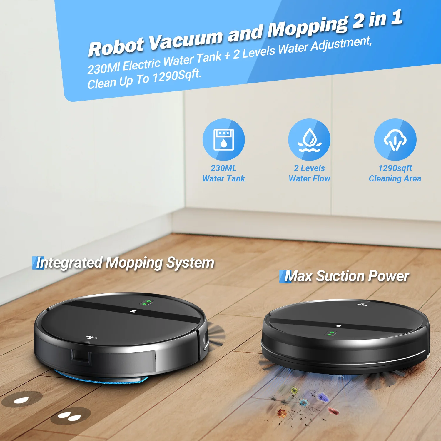 🤖 2-in-1 Sweep & Mop System Intelligent dual-level water control ensures uniform mopping without soaking floors, completing both sweeping and mopping in a single pass.