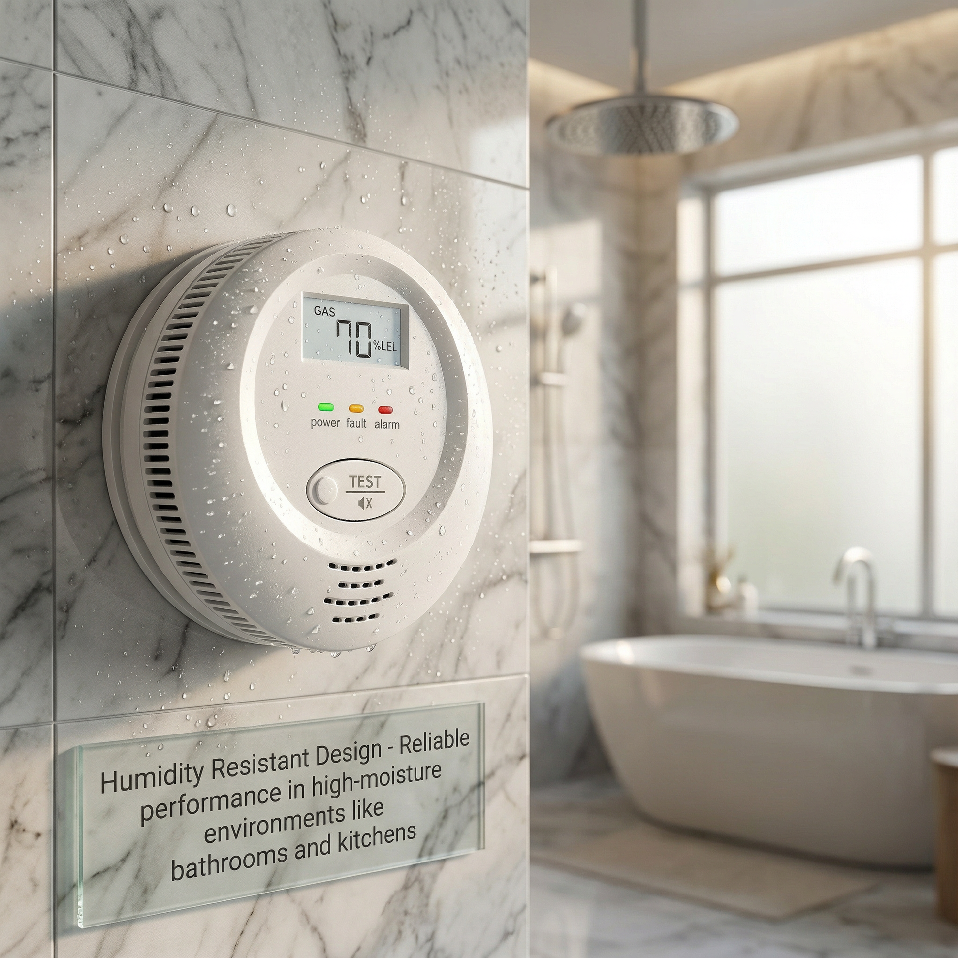 Detects gas leaks even in high humidity environments like bathrooms and kitchens.