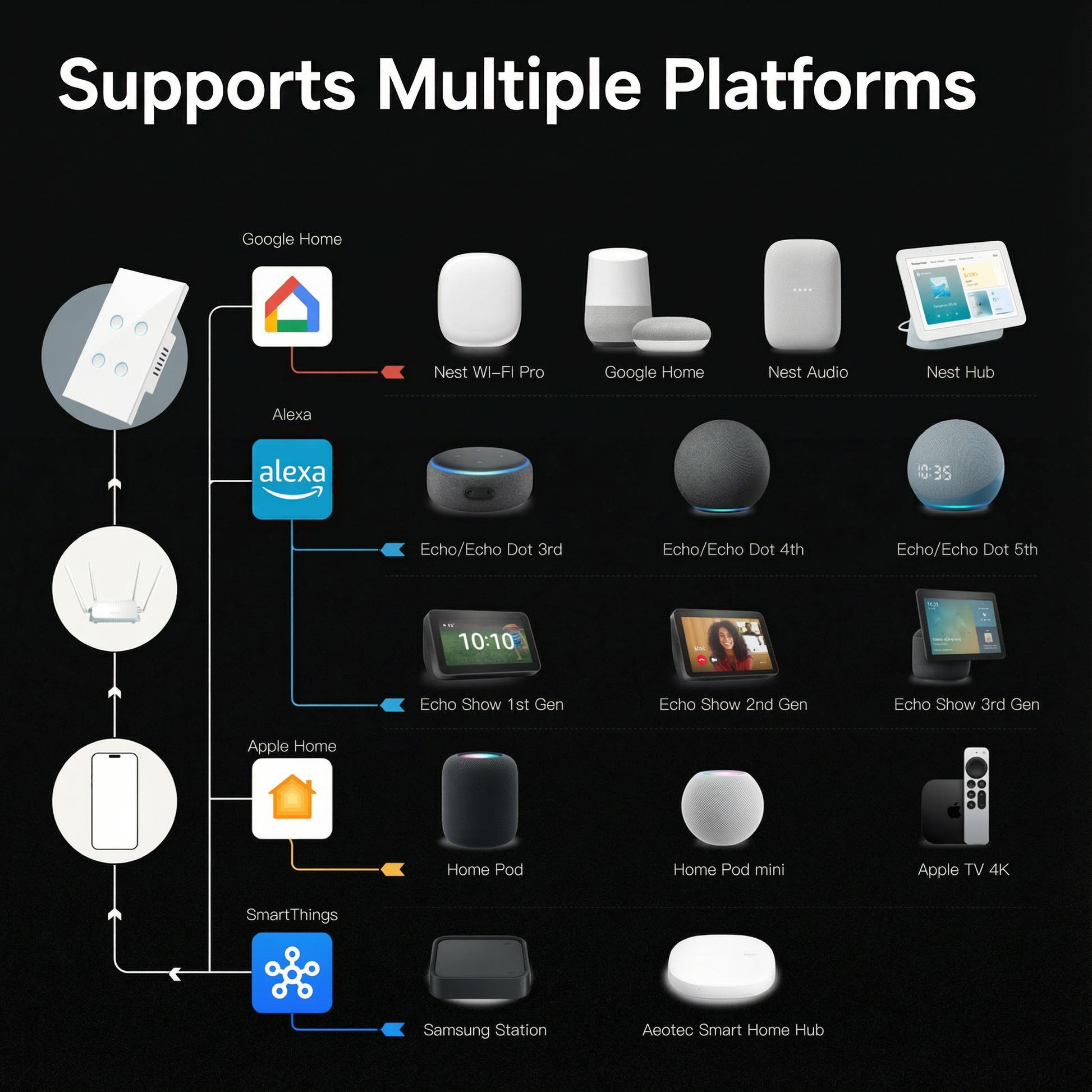 Transforma tu hogar en un espacio verdaderamente inteligente donde el control de iluminación es sin esfuerzo, elegante y unificado. Perfecto para hogares modernos, renovaciones y cualquiera que busque una experiencia de hogar inteligente premium sin la complejidad.