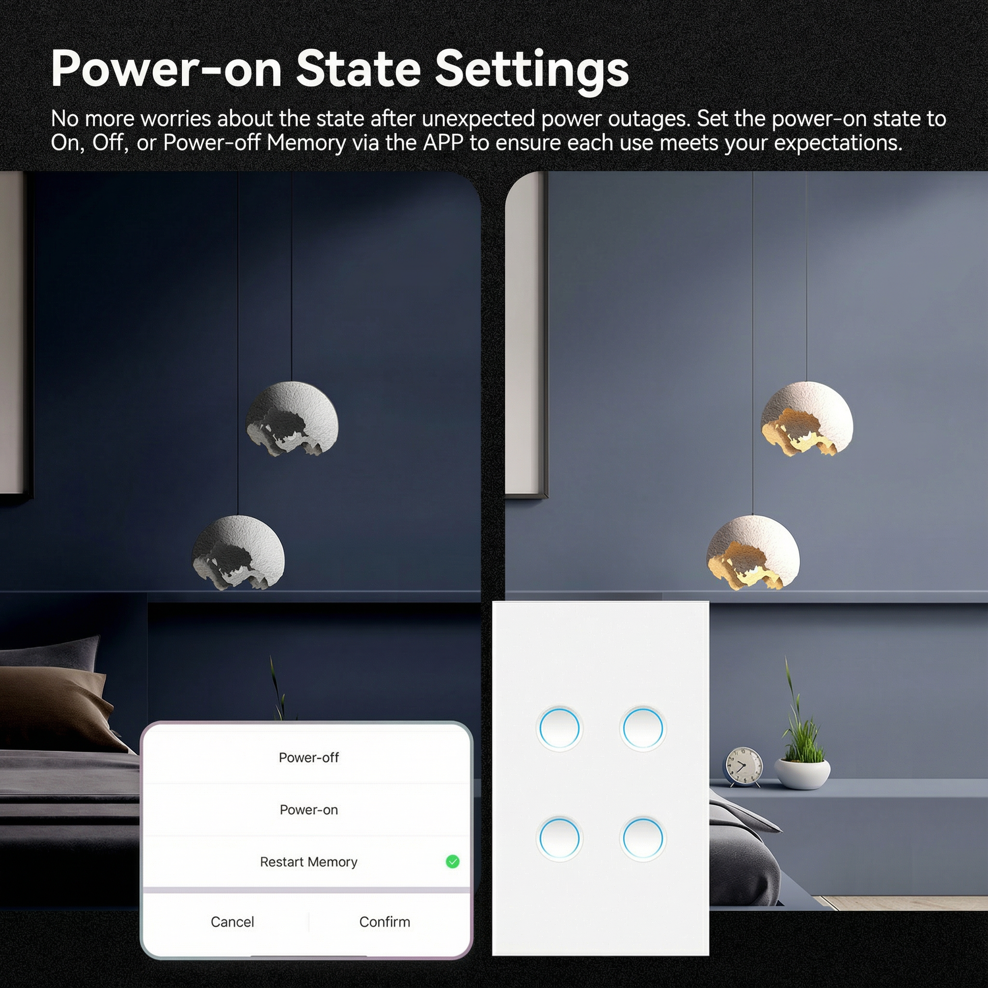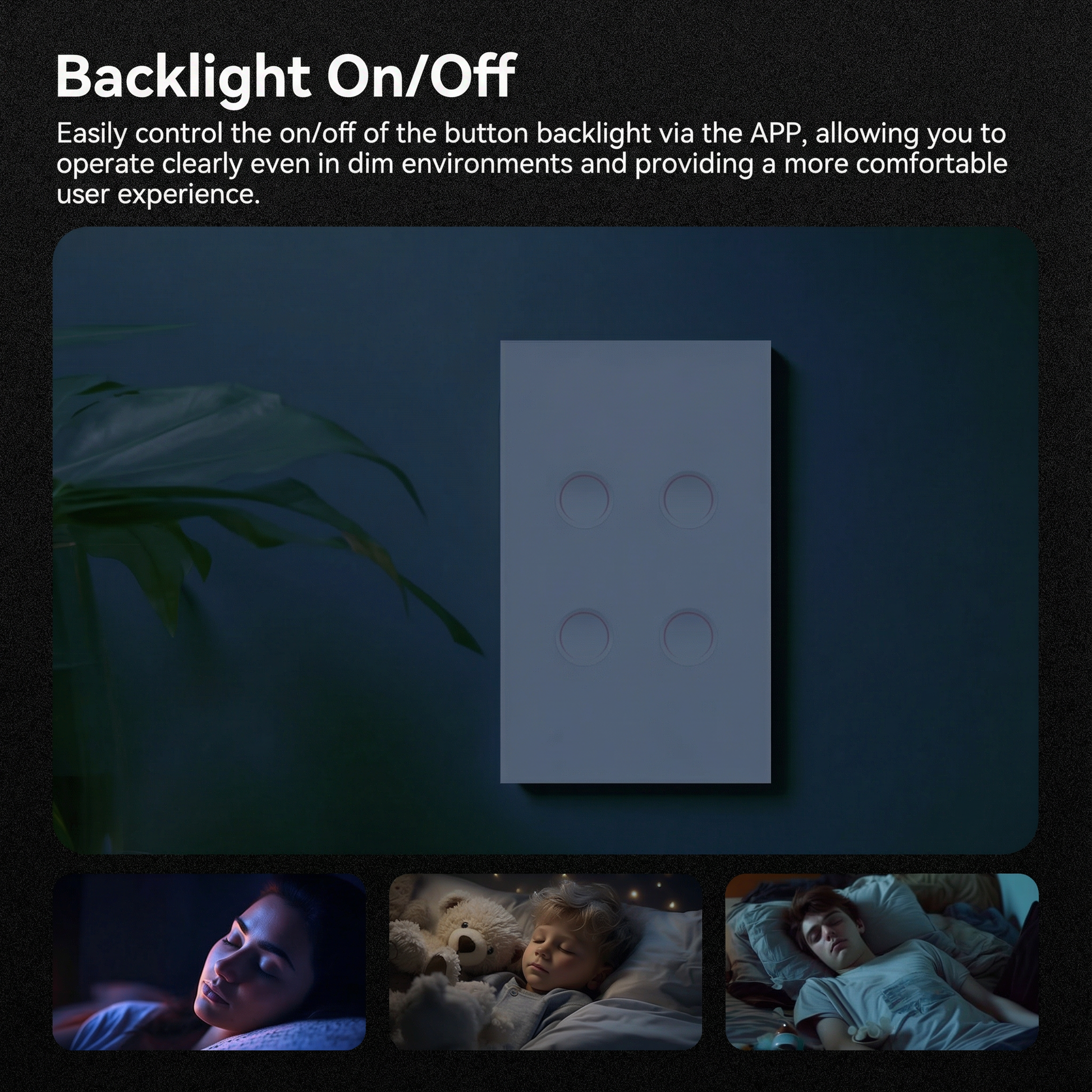Control de Retroiluminación: Ajusta la iluminación de los botones para operación cómoda incluso en oscuridad completa, perfecto para dormitorios y pasillos