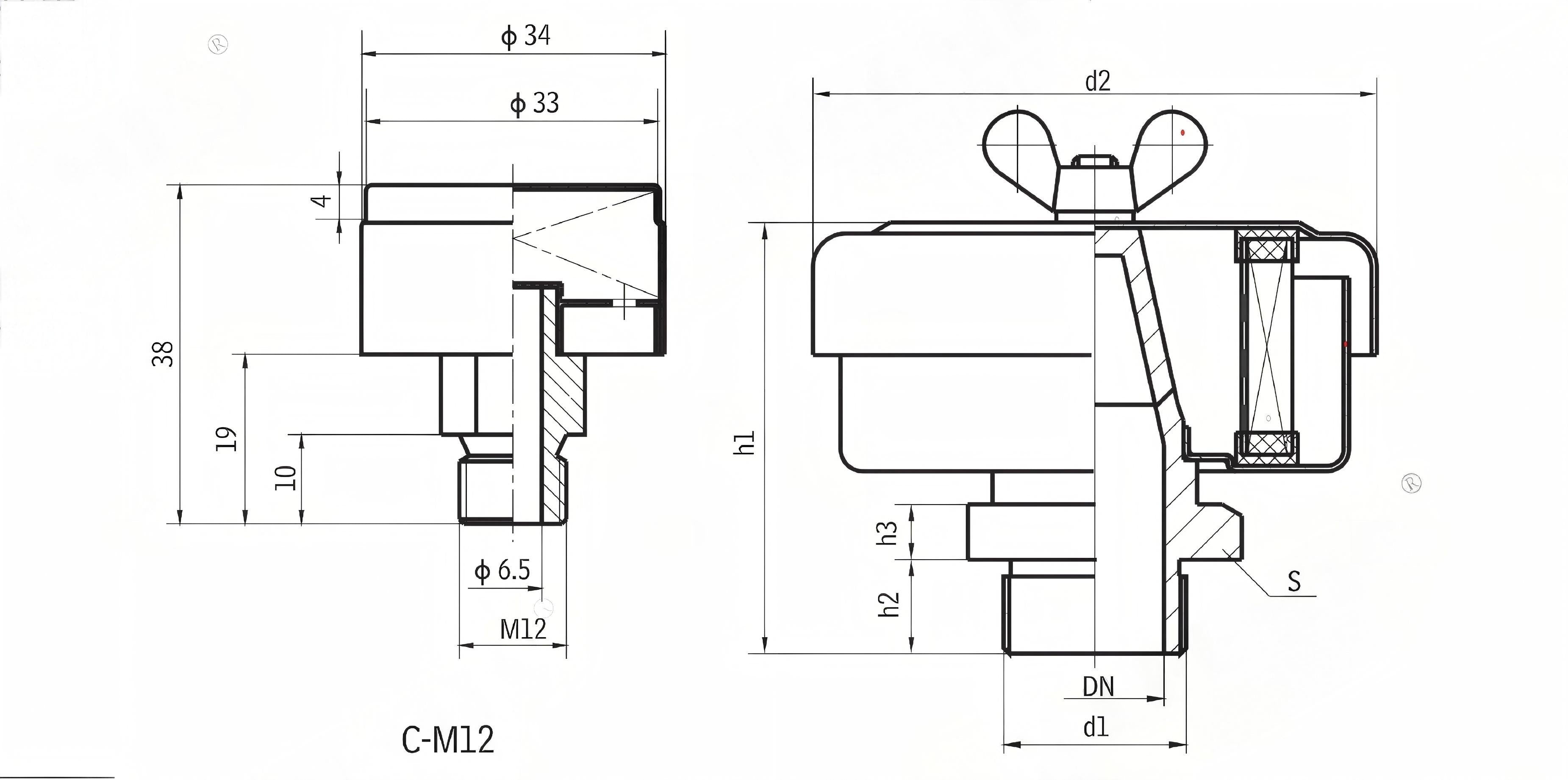 C 型空气滤清器适用于减速器排气用。它能维持减速器箱体内的压力和大气压力平衡,并防止脏物颗粒从外部进入箱体,保持箱体内油液的清洁,延长减速器的使用寿命。