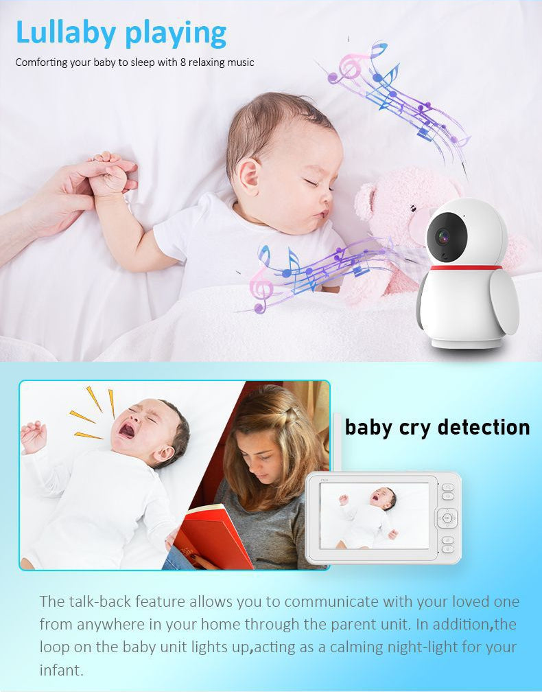 - Play Lullaby - Built-in soothing music helps baby fall asleep faster