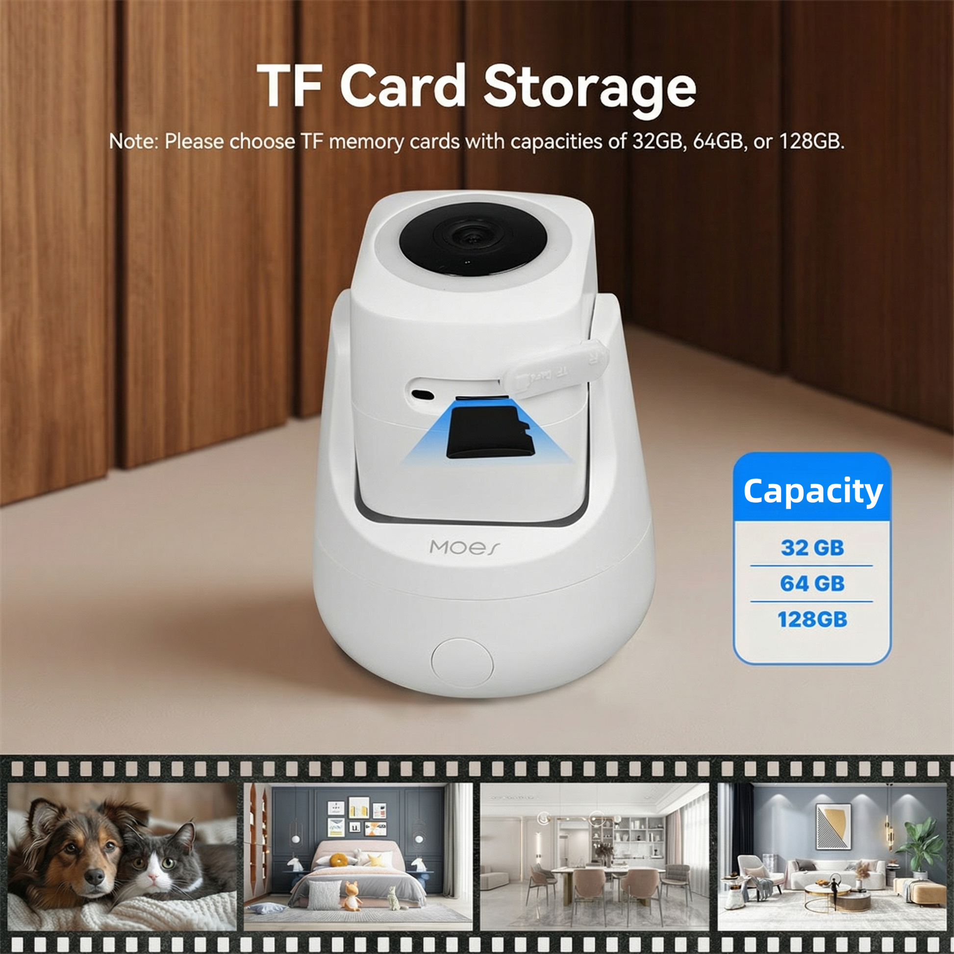 Compatível com cartões TF de 32 GB, 64 GB e 128 GB para armazenamento local. Nunca mais se preocupe com taxas de assinatura na nuvem ou com a falta de espaço para gravar imagens importantes.