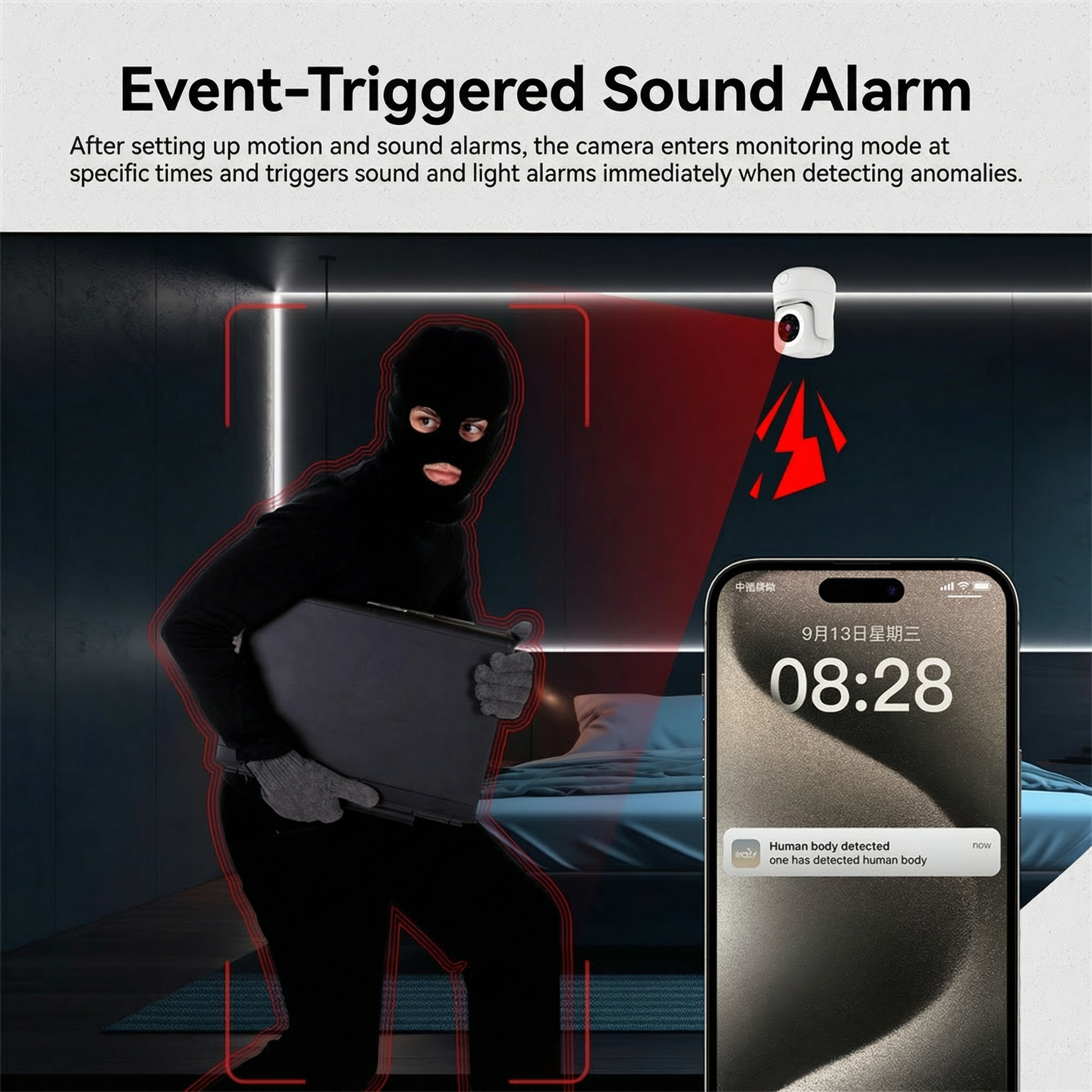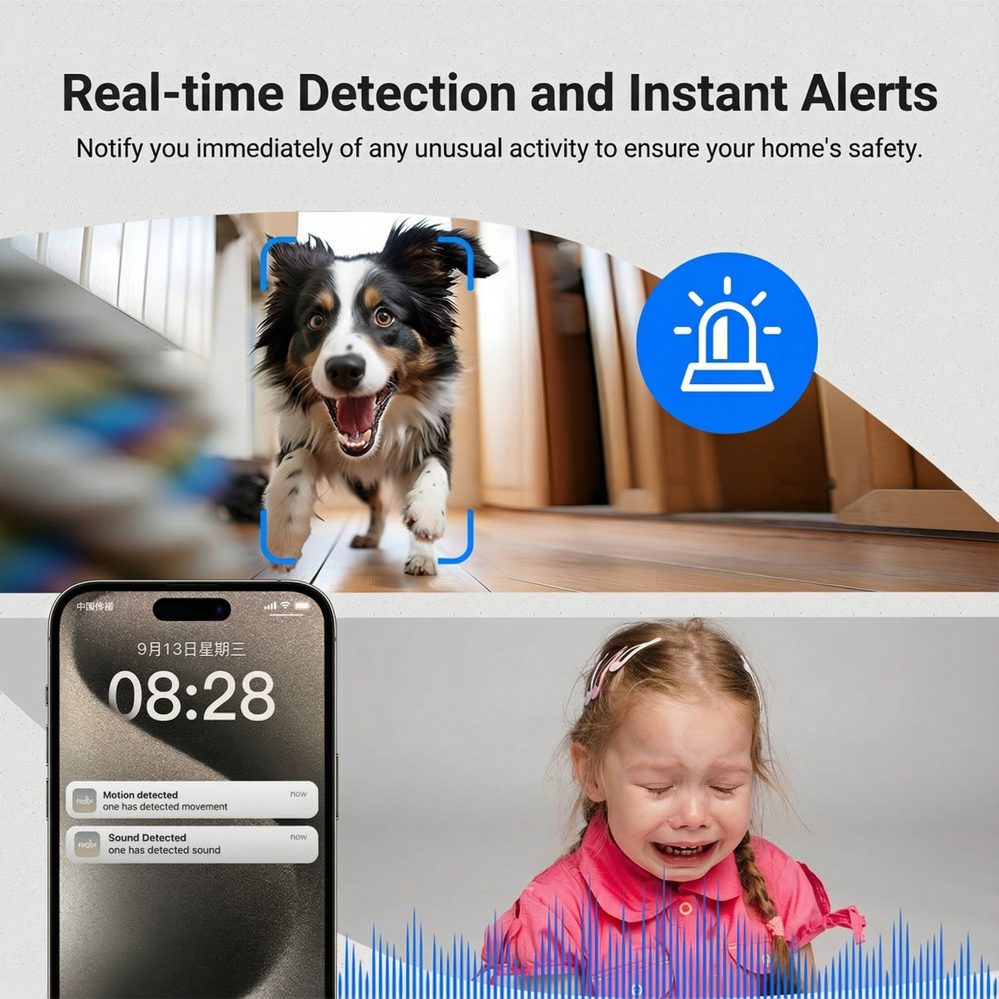 Receba notificações instantâneas no seu celular quando movimento ou som forem detectados. A câmera entra automaticamente no modo de monitoramento e ativa alertas com luz estroboscópica para afastar intrusos, garantindo que você esteja sempre ciente de qualquer atividade incomum em sua casa.