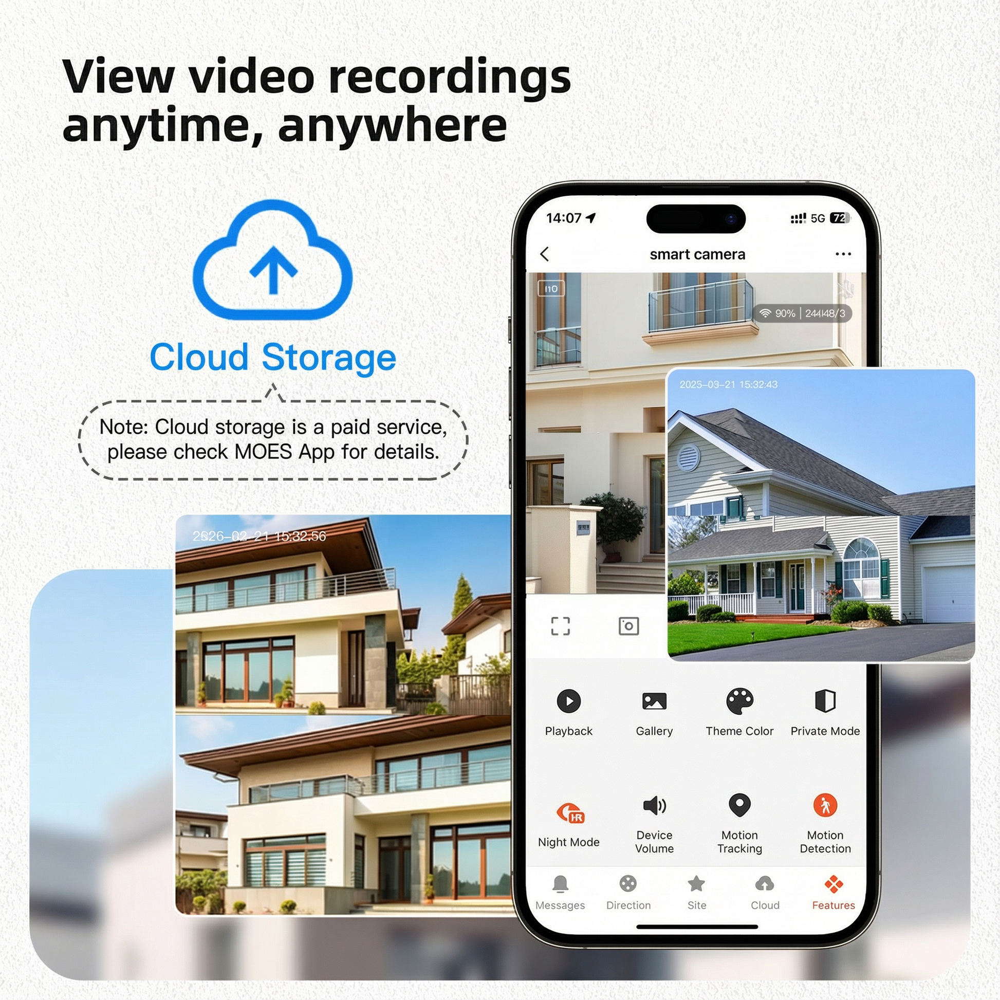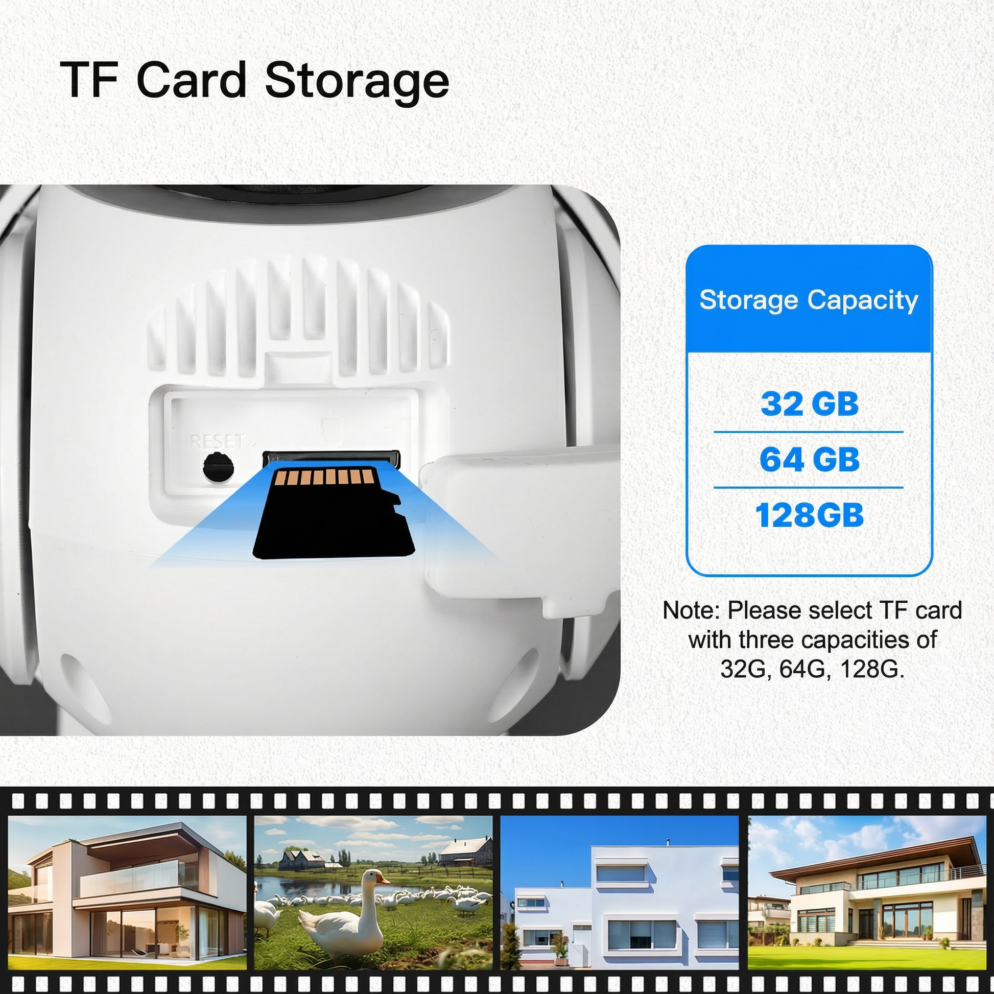 • Opções de armazenamento flexíveis: escolha entre armazenamento local em cartão TF (até 128 GB) ou armazenamento em nuvem – sem se preocupar com a falta de espaço.